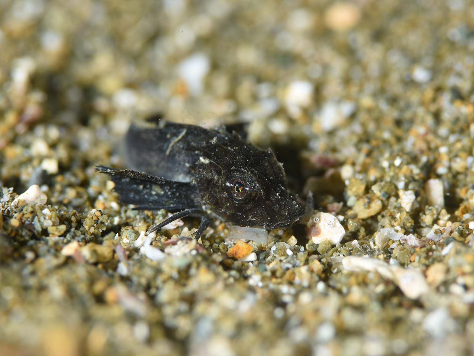 ETワーム(ボウセキウロコムシ科の仲間)、ハナイカ、ヒメイカ、ヒレナガカサゴの幼魚。ホウボウ幼魚、マツカサウオ、ウスバハギ、カスザメ、オオモンカエルアンコウ、イロカエルアンコウ、タツノイトコ、オオウミウマ、オキナワベニハゼ、アナモリチュウコシオリエビ、イソギンチャクモエビなどなど~