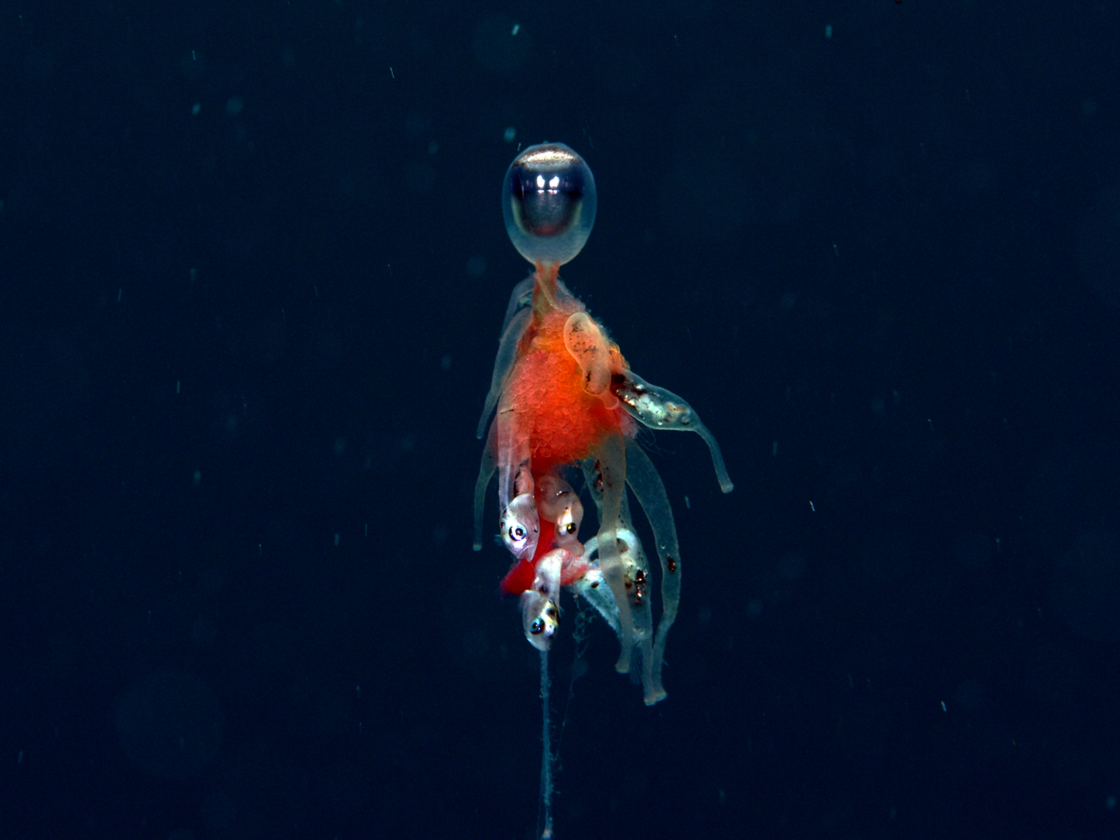 カイアシ類の中に混じって泳いでいたチゴダラ科の幼魚✨