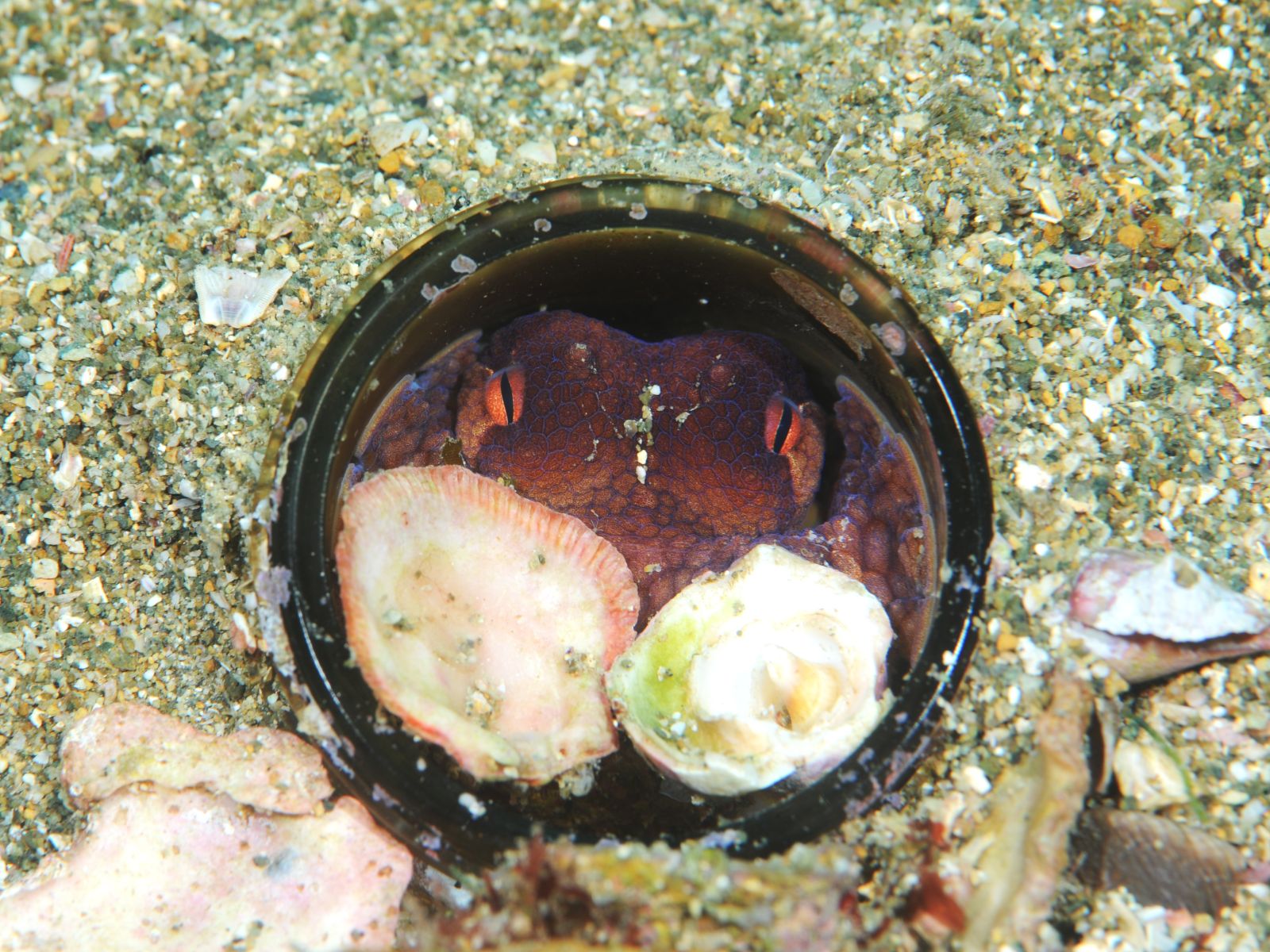 ETワーム(ボウセキウロコムシ科の仲間)、ハナイカ、コウイカ、ミサキコウイカ、ヒメイカ、ホウボウ幼魚、マツカサウオ、ウスバハギ、カスザメ、オオモンカエルアンコウ、イロカエルアンコウ、タツノイトコ、オオウミウマ、オキナワベニハゼ、アナモリチュウコシオリエビ、イソギンチャクモエビなどなど~