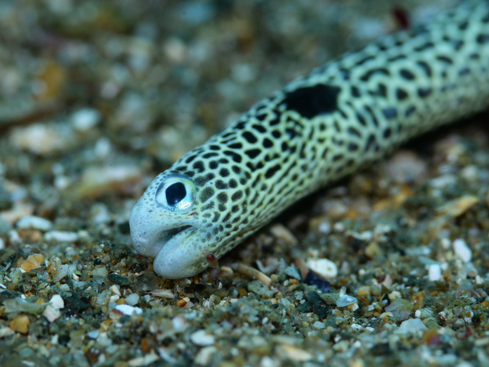 通常チンアナゴは砂から上半身だけしか出していないので、尻尾を見る機会は皆無です。