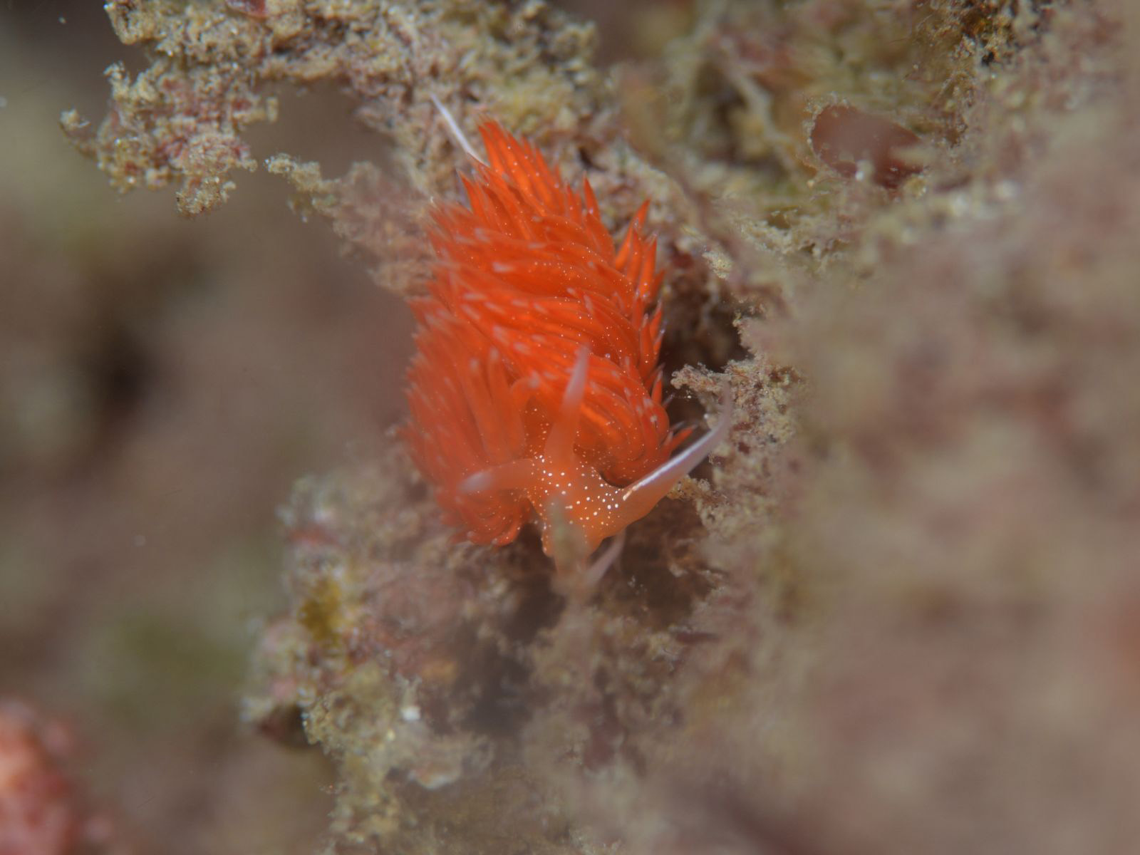 ふさふさのミノが綺麗なアカエラミノウミウシです