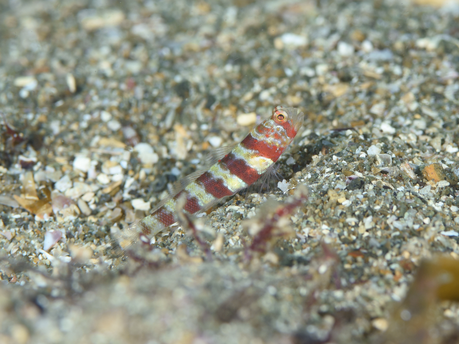 ちょっと遠い場所にいるし、クビアカハゼほど色鮮やかじゃないので、、、あまりリクエストのないダンダラダテハゼ😆