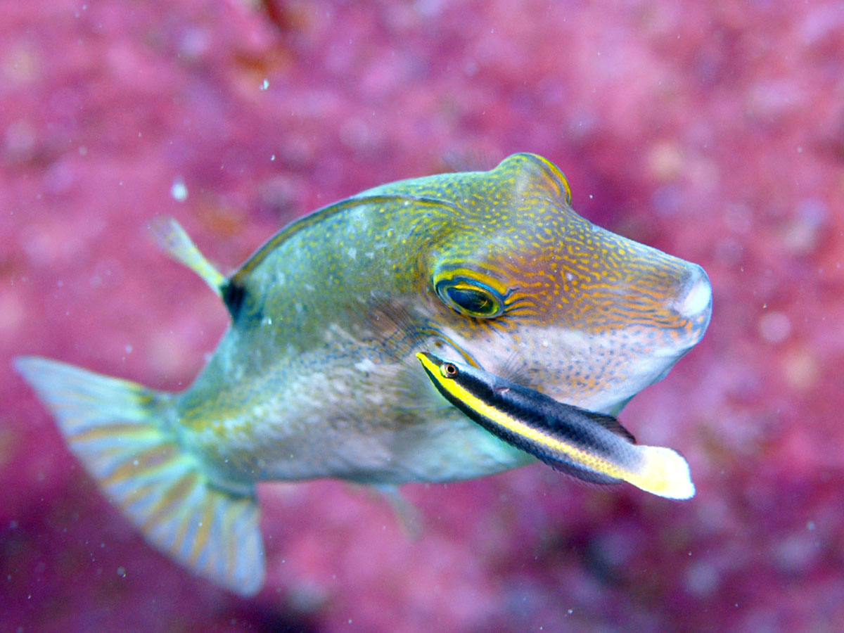 ソメワケベラがキタマクラをクリーニングしてました~♪