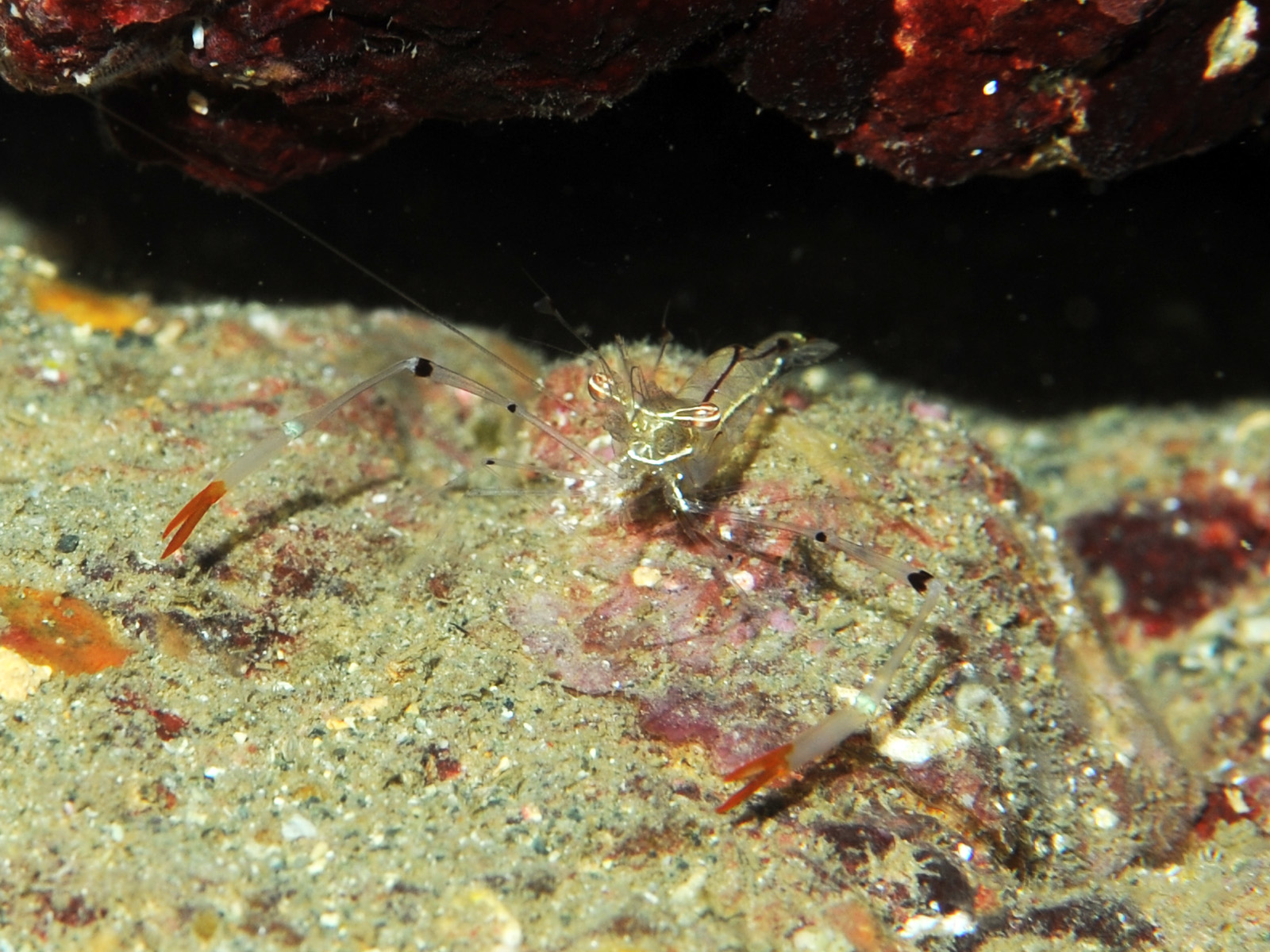 岩場で生き物を探しているとオシャレカクレエビが見つかりました~