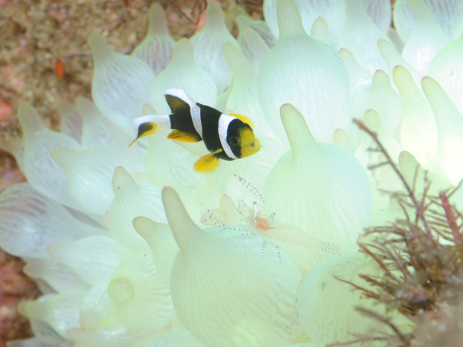 クマノミ幼魚とカザリイソギンチャクエビ