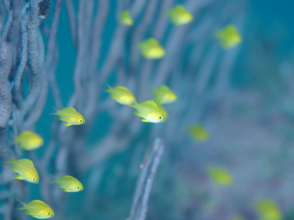 今シーズン多く目につくのがコガネスズメダイの幼魚たち