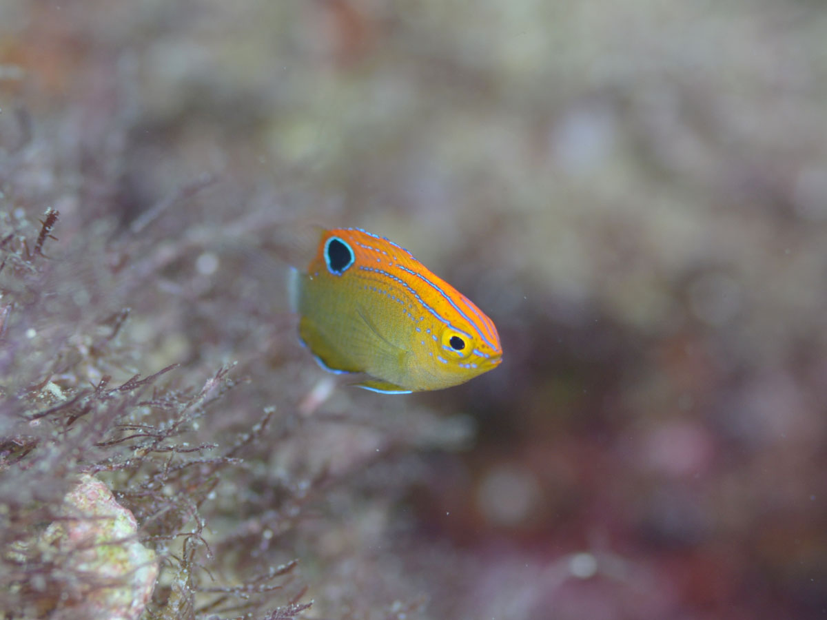 水深3mの浅場に登場したのはメガネスズメダイの幼魚