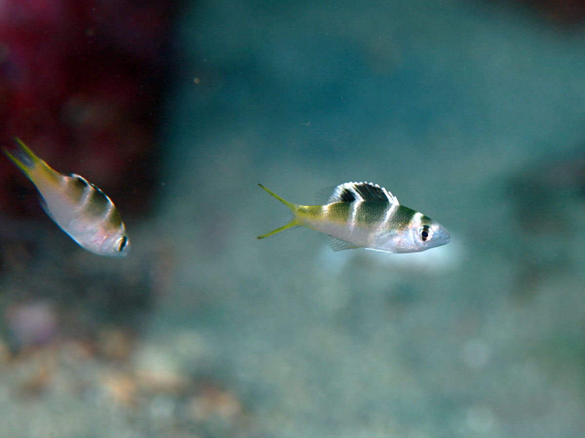 今日新たに見つけたのはヨコシマクロダイの幼魚