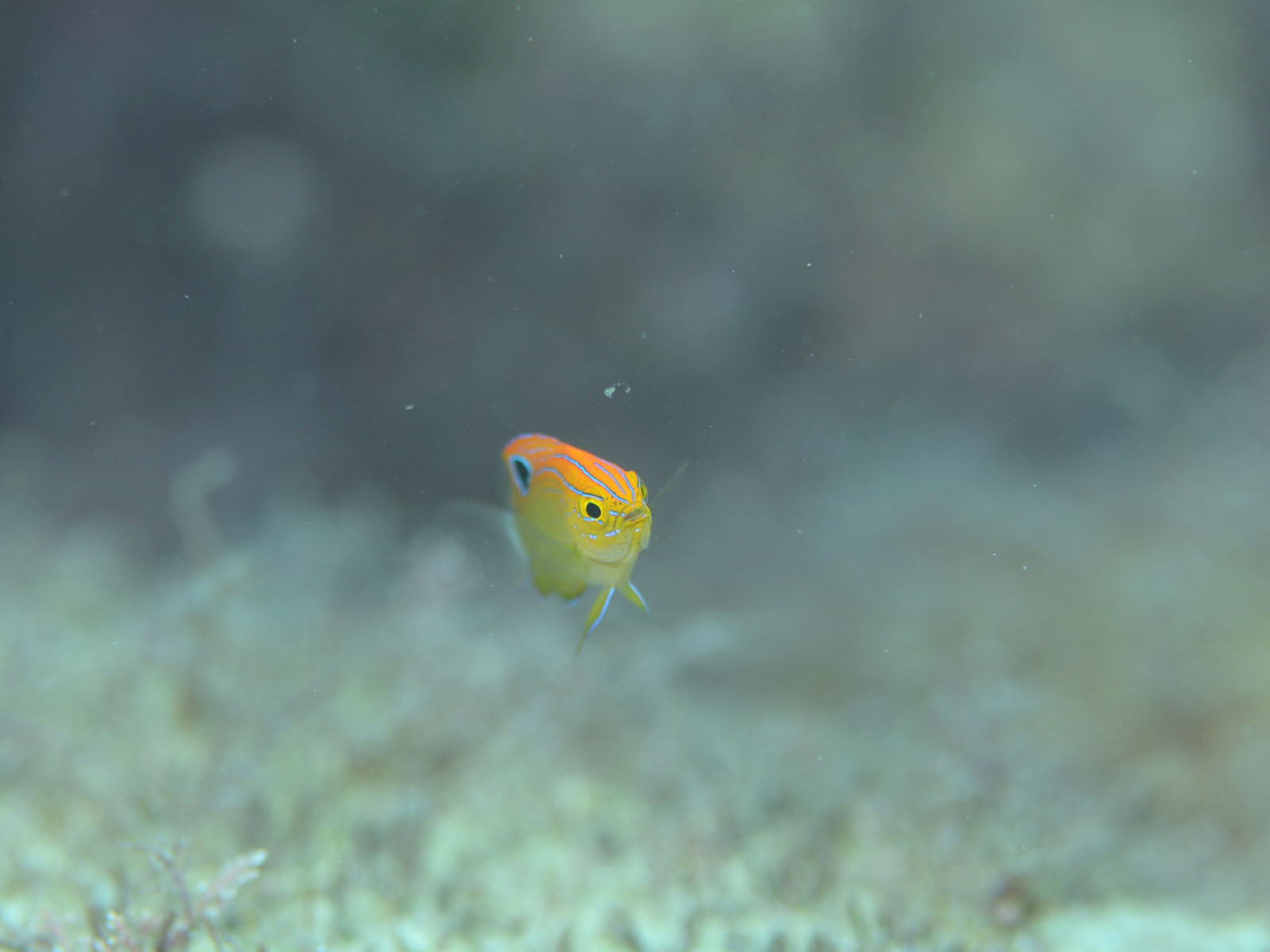 こちらは水深4m付近に住んでいるメガネスズメダイ幼魚