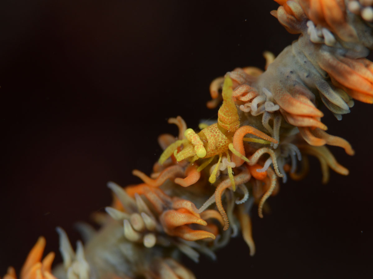水深の浅い黄金崎では数が少ないムチヤギに住み着いています。
