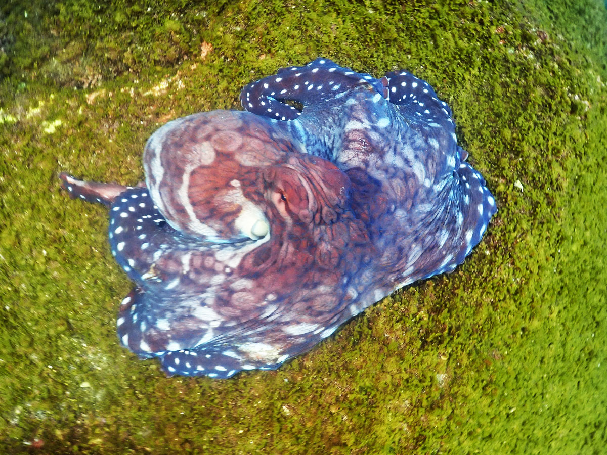 海況のいい日には時々ワモンダコが岩の上に乗ってジッとしています。