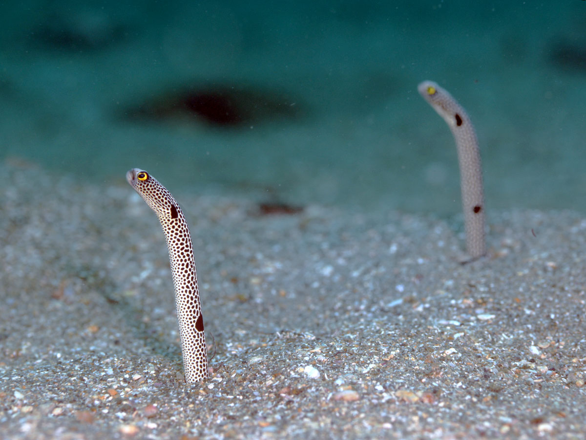 今日のログにはチンアナゴが2匹並んでいるところを載せようと頑張ったんですが、僕の腕ではこれが限界でした💦