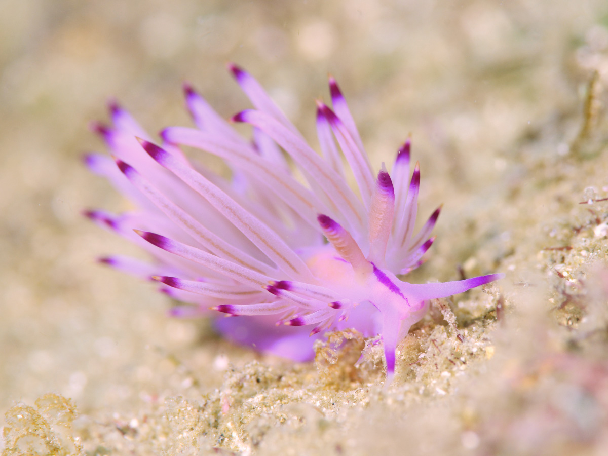 背中に入るラインが途中で途切れているのでこれはロータスミノウミウシですね