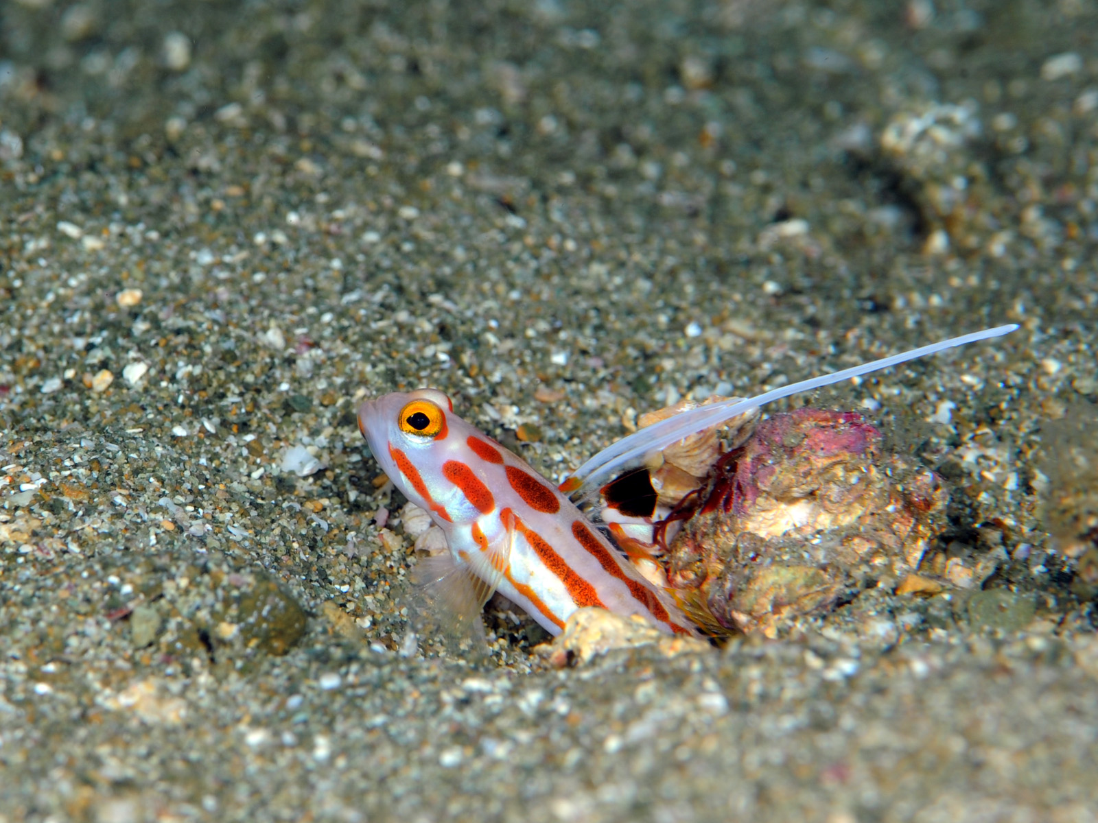 ヤシャハゼ、ワモンダコ、カミソリウオ、イロカエルアンコウ、カエルアマダイ、ニシキフウライウオ、イバラタツ、ウミテング、キツネベラ幼魚、ヤノダテハゼ、アカハチハゼ、クビアカハゼ、ハコフグ幼魚、チンアナゴ、オキナワベニハゼ、アオスジテンジクダイ、アオハナテンジクダイ、ネジリンボウ、ヒレナガネジリンボウ、ニラミギンポ、モンスズメダイ幼魚、ヒレグロスズメダイ幼魚、アナモリチュウコシオリエビ、イソギンチャクモエビなどなど~