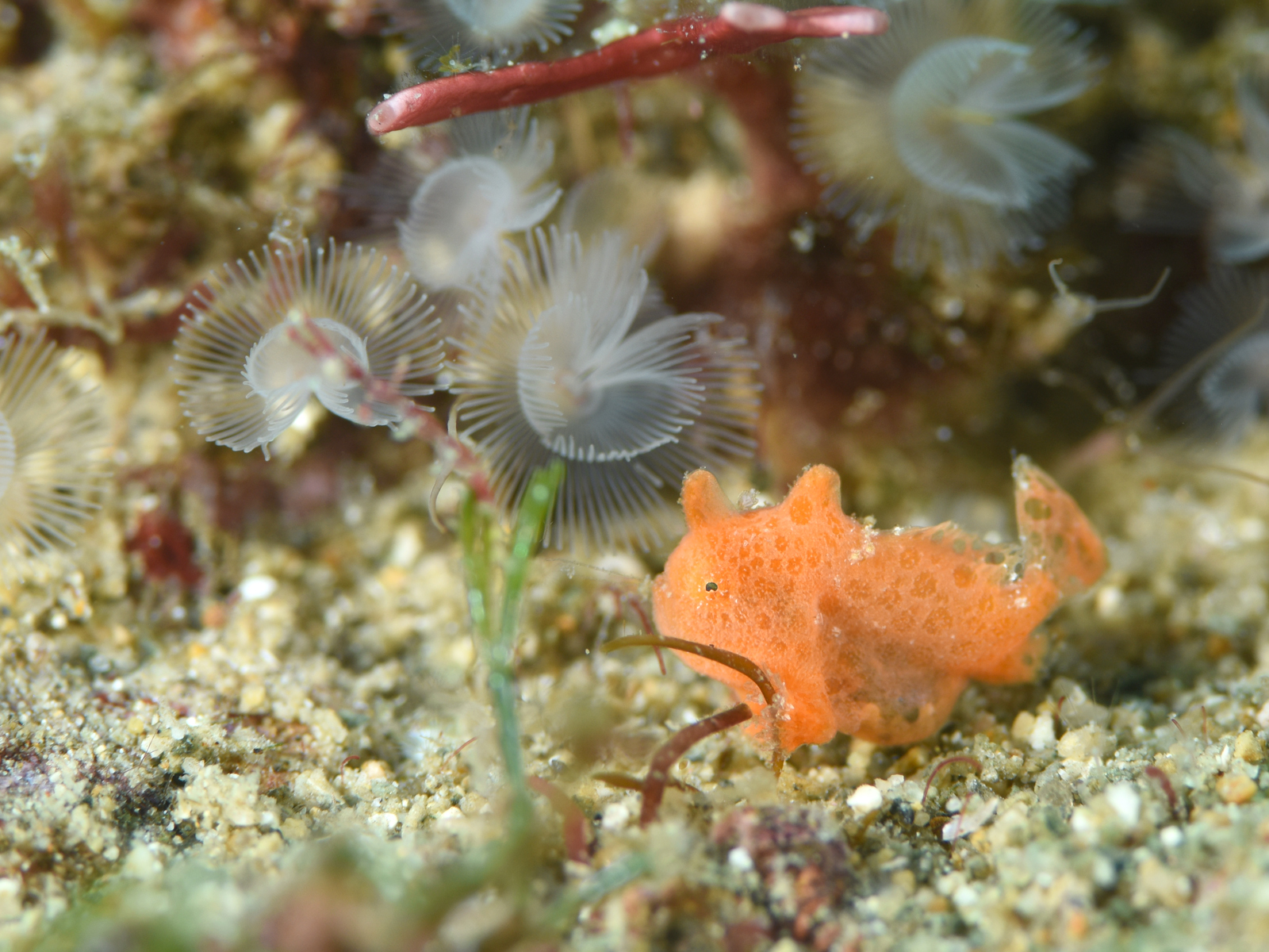ヤシャハゼ、ワモンダコ、カミソリウオ、イロカエルアンコウ、カエルアマダイ、イバラタツ、ウミテング、キツネベラ幼魚、ヤノダテハゼ、アカハチハゼ、ハコフグ幼魚、チンアナゴ、オキナワベニハゼ、アオスジテンジクダイ、アオハナテンジクダイ、ネジリンボウ、ヒレナガネジリンボウ、モンスズメダイ幼魚、アナモリチュウコシオリエビ、イソギンチャクモエビなどなど~