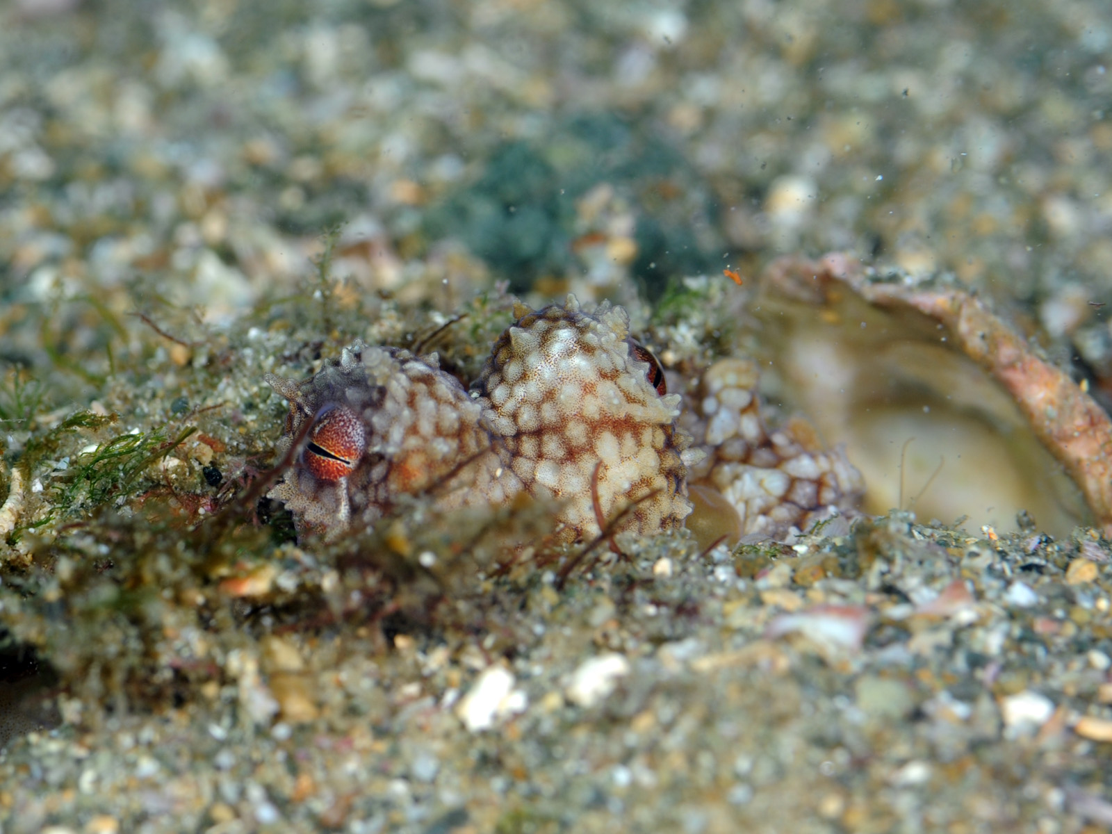 シェルター(貝だけに)に引きこもり、守りは万全のスナダコ。