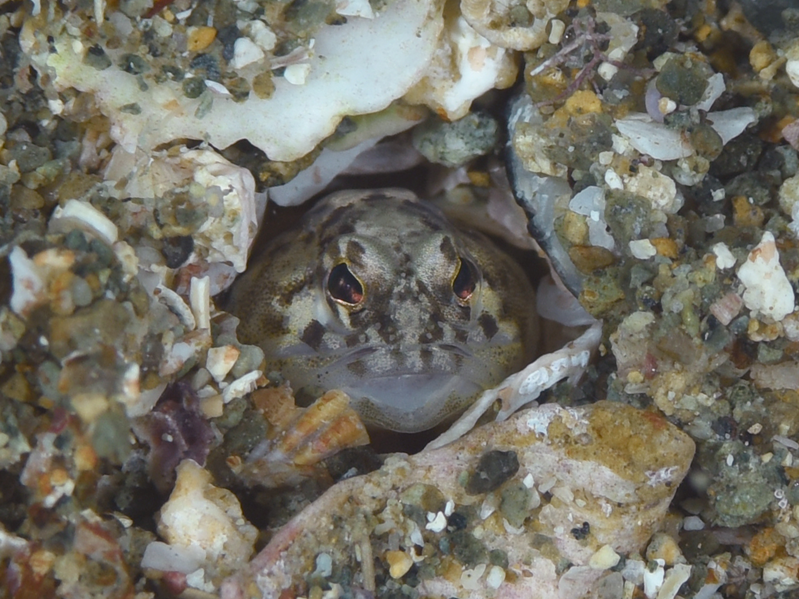 カミソリウオのご近所ではヒメアゴアマダイが巣穴から顔を出していました!