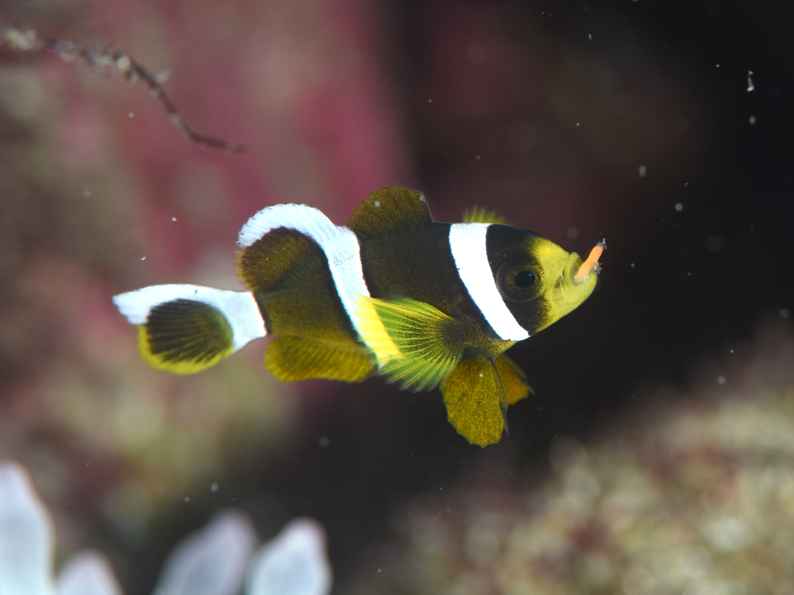 食欲旺盛なクマノミ幼魚。