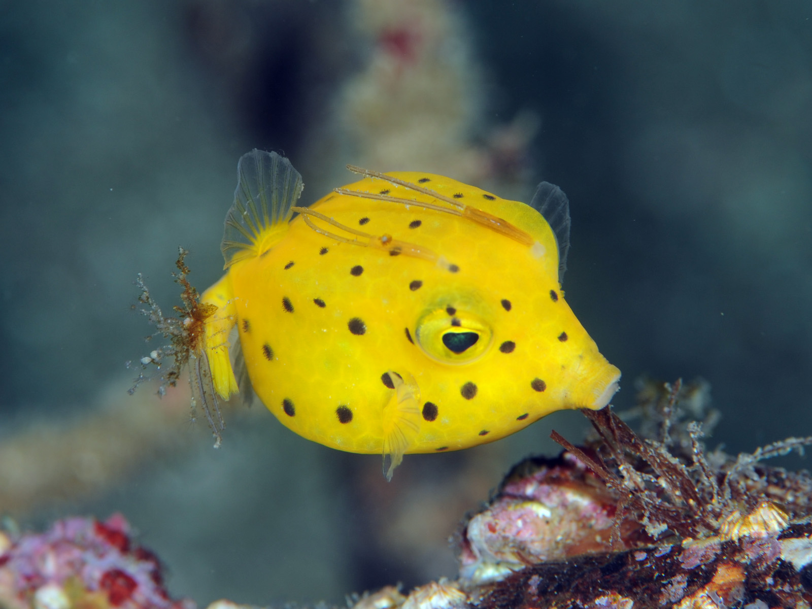 角が生えちゃったみたいになっているハコフグ幼魚。