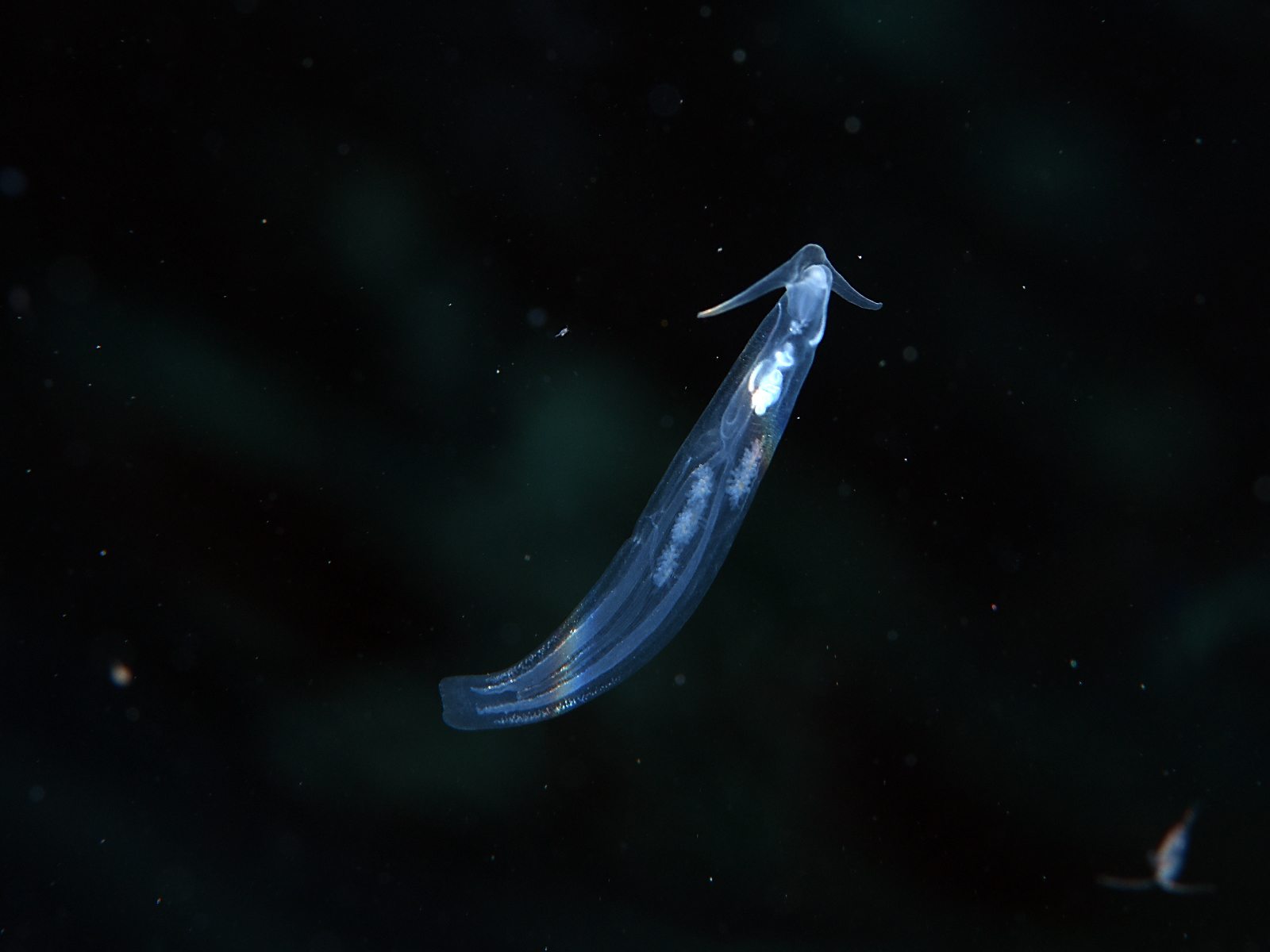 クネクネ泳ぐササノハウミウシの他にも、サクラエビの仲間、ゾウクラゲ、などが泳いでいる姿が見られました。