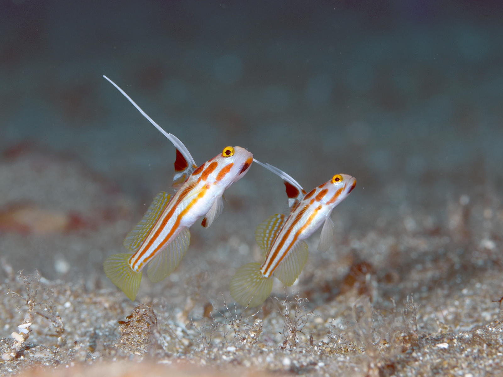 ヤシャハゼのペアが元気いっぱいにホバリング!