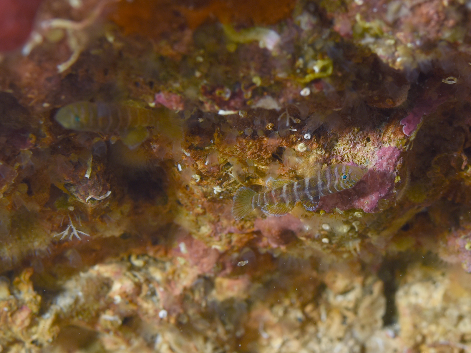 ちびちびベンケイハゼが岩の隙間に隠れていました。