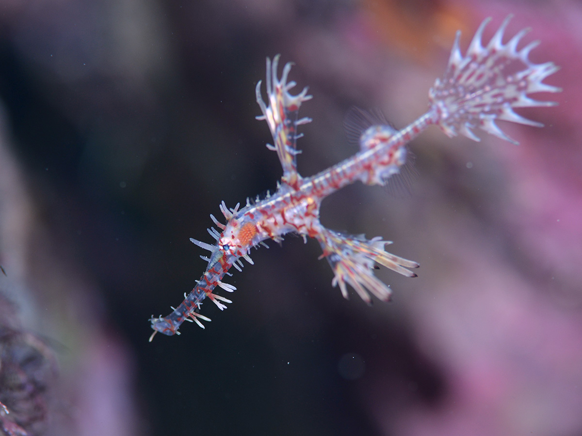 バナナくらいの大きさまで成長するタツノオトシゴの仲間ですが、現在黄金崎で見つかっている個体は体長7㎝程