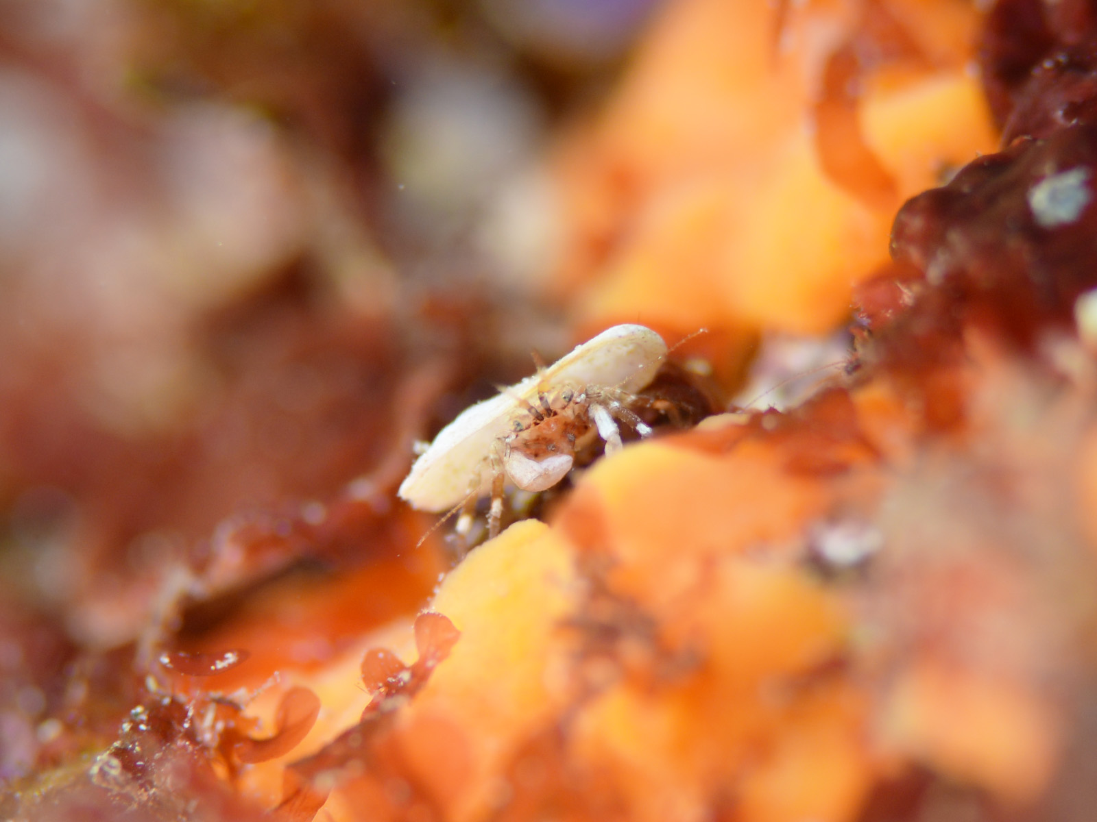 2枚貝の貝殻を背負っているヤドカリの仲間です。
