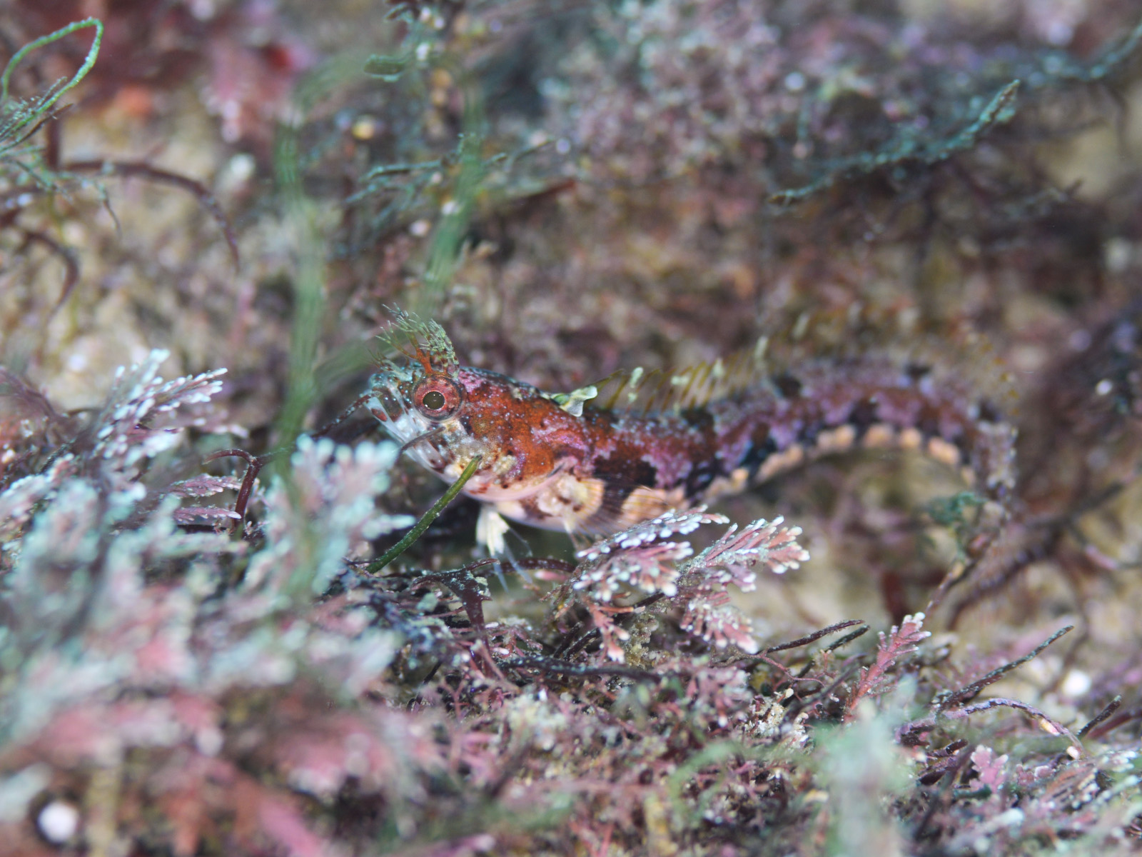 ミズヒキガニ、コケギンポ、ヒメアゴアマダイ、イロカエルアンコウ、オオモンカエルアンコウ、イバラタツ、オオウミウマ、ハコフグ幼魚、オキナワベニハゼ、アオスジテンジクダイ、アオハナテンジクダイ、ヒレナガネジリンボウ、アナモリチュウコシオリエビ、イソギンチャクモエビなどなど~