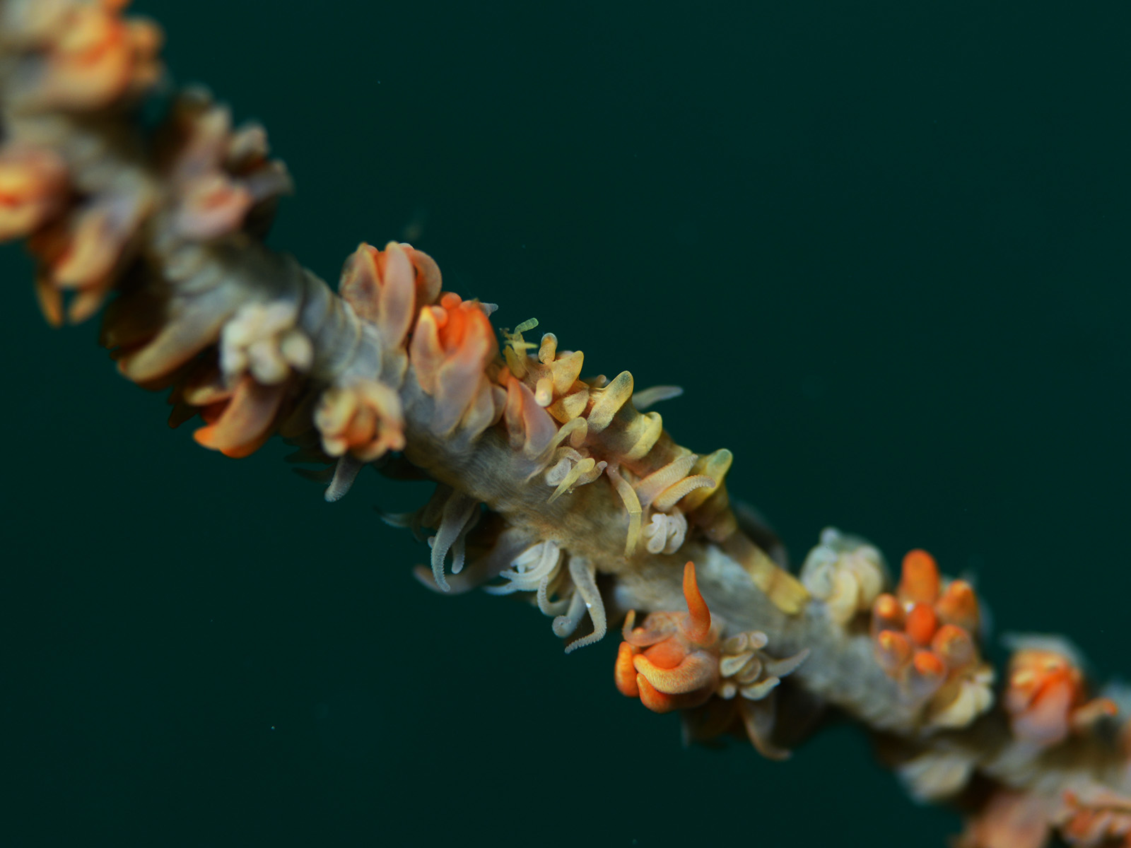 ちびっ子ビシャモンエビはムチカラマツにつかまって荒れた海を耐えています~