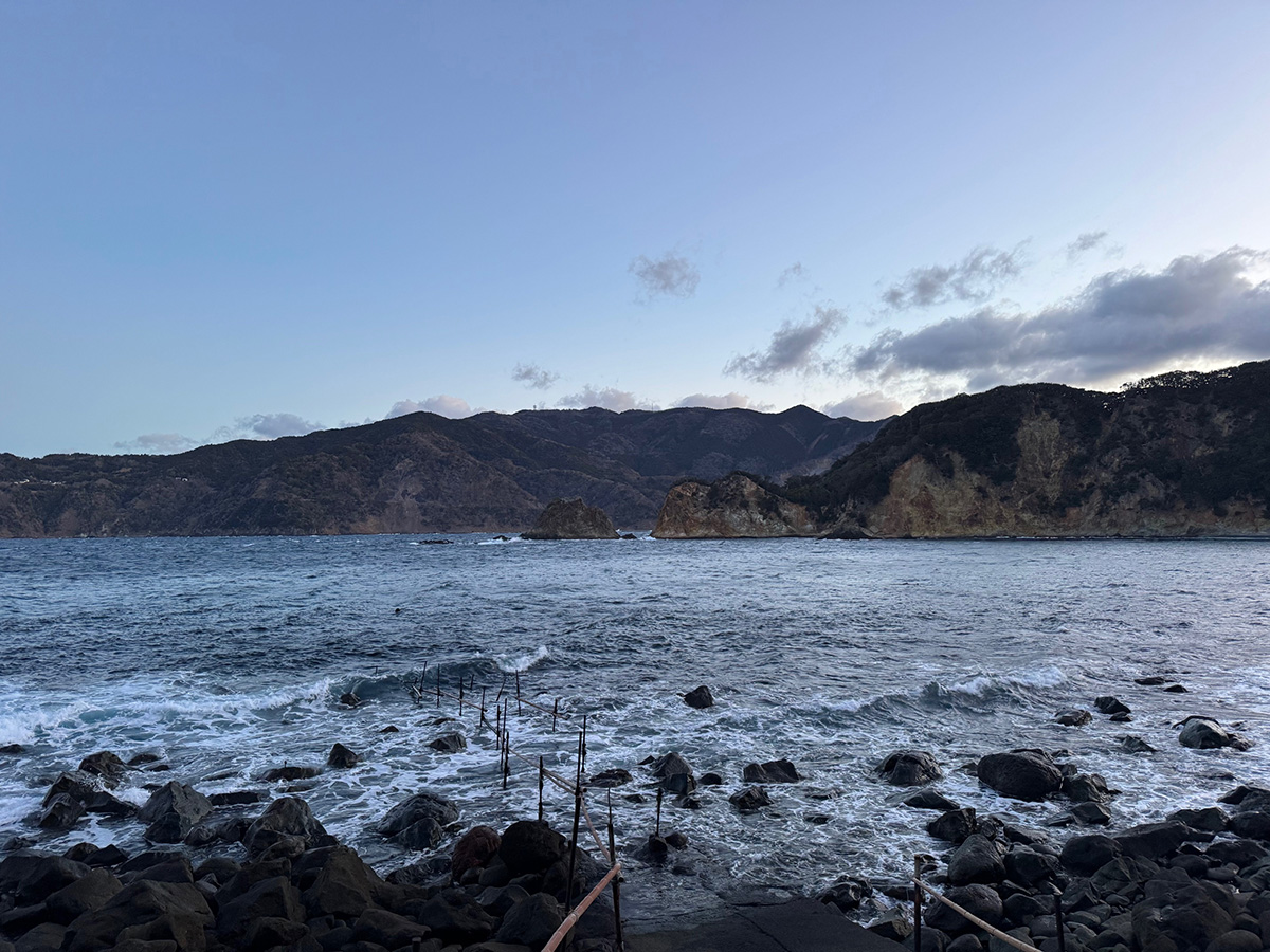 昨日の予報は今日は強風予想!クローズかと思っていましたが、意外にも風が弱まり予報もいい方に変わってきている今日の黄金崎公園ビーチです。波打ち際は少々ザワついていますが、今日も終日潜れるでしょう♪
