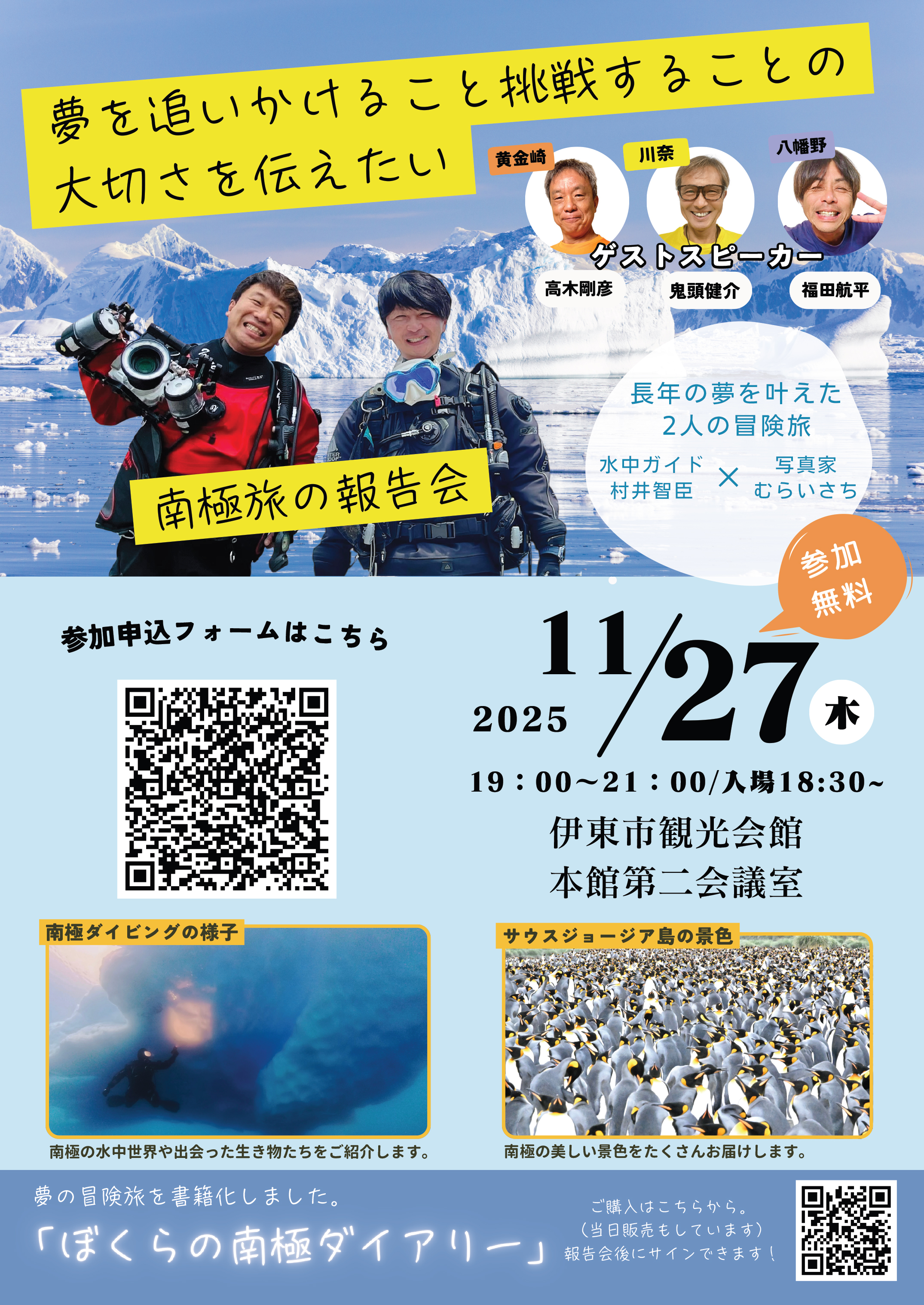 現地でのエピソードや南極に込めた想い、夢を追いかける事の楽しさ、きっと勇気をもらえる時間になる事でしょう👍