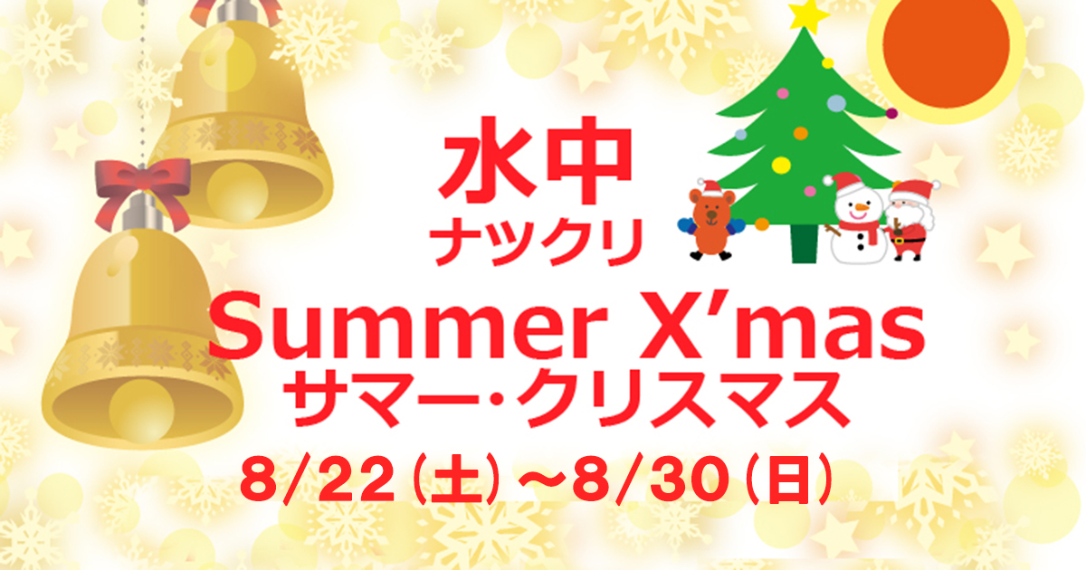 ウェットダイバーだって水中クリスマスを楽しみたい!!・・・ってことで、冬季限定だった水中のクリスマスツリーを夏にも設置します!みんなで真夏のクリスマスを楽しんじゃいましょう(^^)/ 開催期間 202…