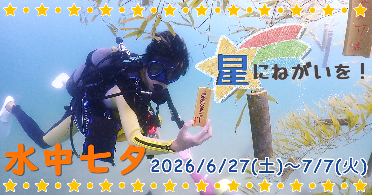 竹の短冊に願いを込めて♡星に願いを☆水中七夕🎋ダイビング~! 開催期間 2025/6/27(土)~7/7(火)参加費 無料♪竹の短冊に願いを書いて、水中七夕に飾っちゃおう!
